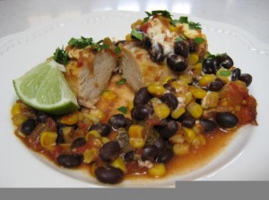 Saute black beans and corn in pan. Add shredded chicken if desired Make a salad...it's pretty straightforward really