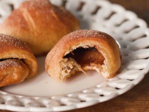 Prepare the cinnamon filling: In a medium bowl, stir together the butter, brown sugar and cinnamon. Scoop the filling into ...